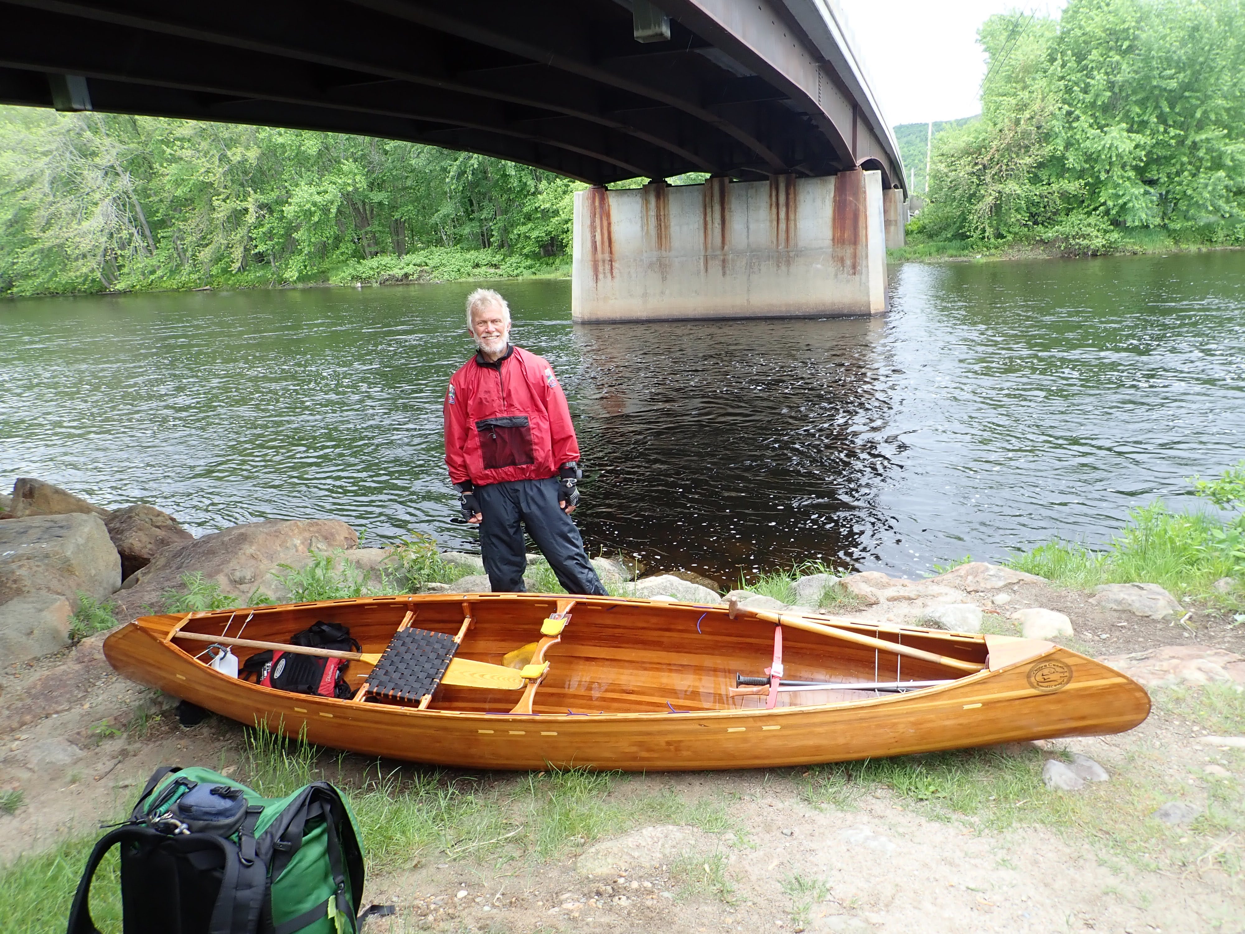 It was 2:45 pm as, with a flippant suggestion to Ray that I now start lap 2, I pulled into the eddy under the Meadow Road bridge in Shelburne, exactly where I had started this journey 18 days previously. The circuit was complete, the adventure over, the concept of the loop proven. The survivor photo this time, taken by Ray, included only me and my trusty canoe. The Little Canoe that Could … and Did, with me at the helm, had survived another adventure that had taken us to waters new, as well as some more crazy rock-climbing exploits. Once again the canoe had not disappointed, had lived up to expectation. We have tales to tell, and live to journey in the future, destinations unknown, but ideas are taking shape.
