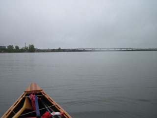 the Missisquoi. The waves are steep and choppy, not conditions that I like, but I ride them well and only a few slop into the canoe.