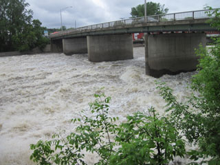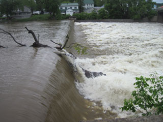 Approaching Swanton the current becomes ever harder to paddle against, and, as the dam comes into sight, I can see that the flow over
