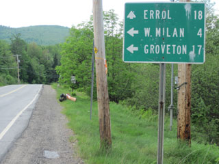 point I take out and carry along the road to Pontook Dam. The sky is darkening, dropping occasional rain.