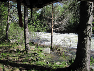 The Rapid River is flowing well, and would be great for white-water kayaking today. At the Forest Lodge, former home of author Louise