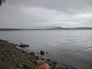 no hint of dry wood anywhere, I use the gas stove to cook dinner, hoping that it will last. The mosquitoes and blackflies have now