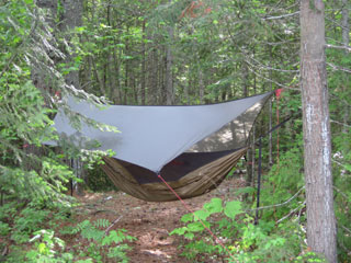 soon come to the first campsite, Canvas Dam, and take the site which faces the lake, hoping to have a breeze to keep the bugs down.