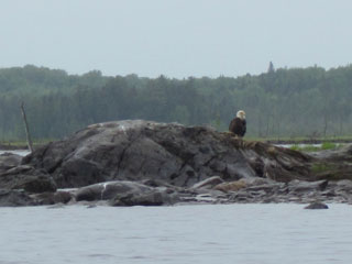 in this region, and a couple of bald eagles, having nothing tall to perch on, use these. Another moose wanders away in the middle