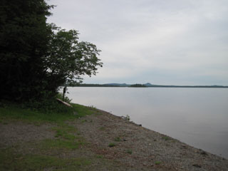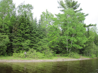 Pillsbury Island, before crossing to the eastern shore. Crossing the outlet from Smith Brook is a tough haul, and then I once more pick