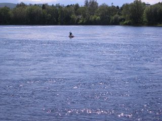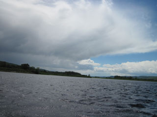 Even when I turn more to the east again, the wind on my left shoulder makes steering difficult. I continue through occasional riffles,