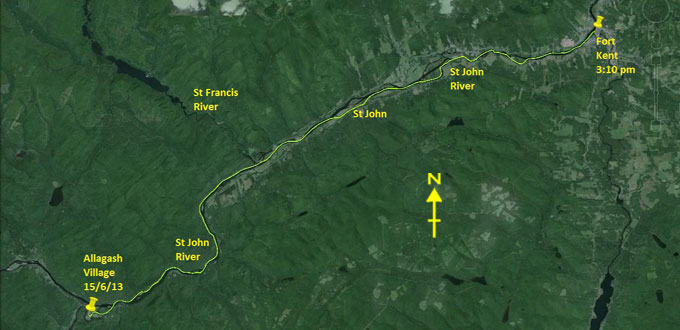 downstream at probably 6-7 mph without any effort. At this rate I'll reach Fort Kent before the agreed 3:00 pm arrival time, the time