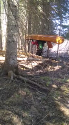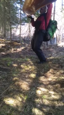 asked permission to take some video of my carry. This he did, my initial loading up and beginning the bushwhack to the trail and the final arrival