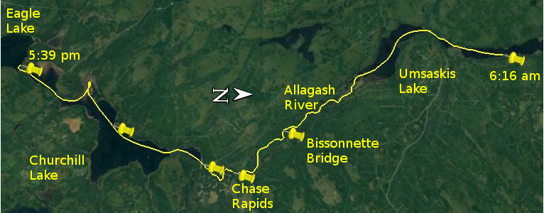 upstream in the Allagash. After a brief chat with some canoe-campers at Chisholm Brook camp-site, I continued upstream, a mix of paddling and