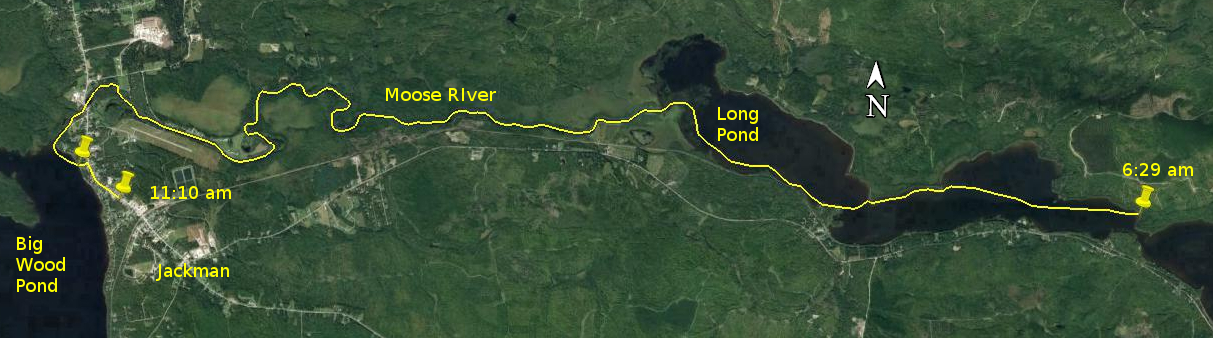 Long Pond was initially calm, although the west wind soon returned, gentle at first, and then vicious as I exited the lake back into the Moose