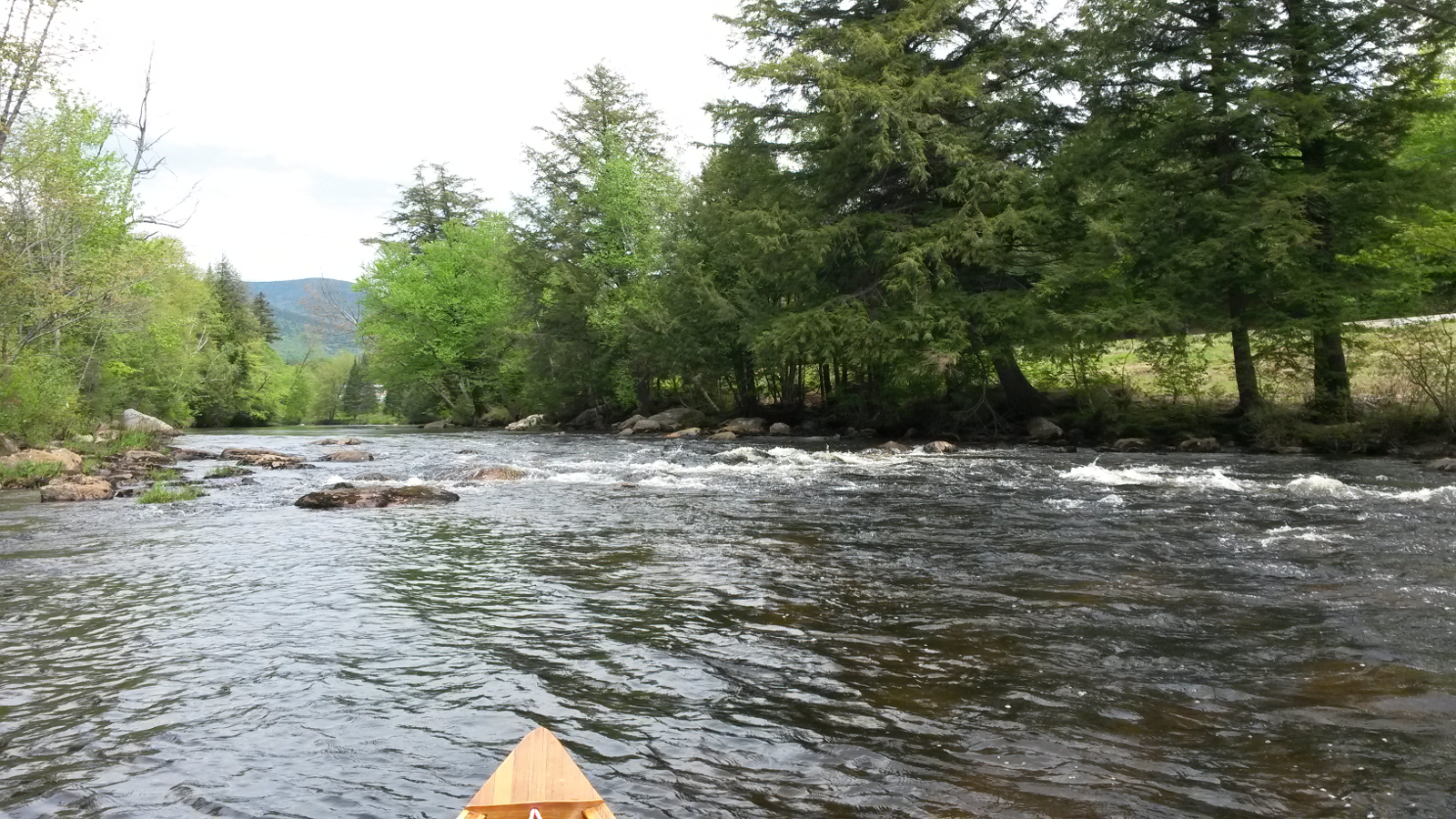 The river from there to Groveton was shallow, mostly paddlable but with a few regions requiring a quick exit to wade on slippery cobbles. The carry