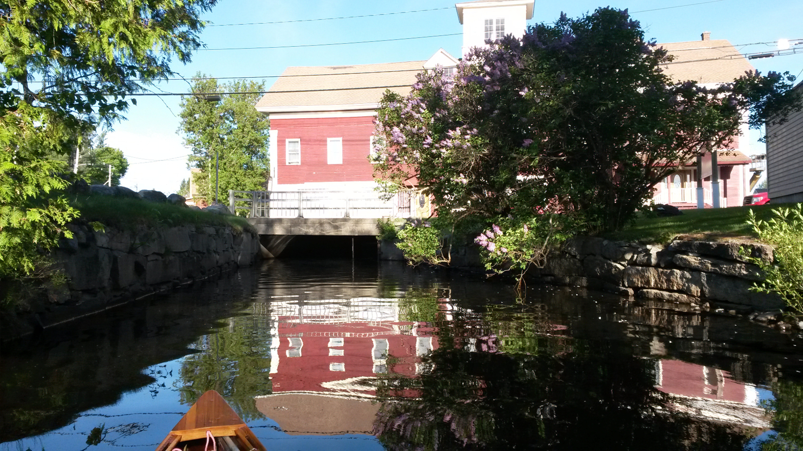 Then my route took me out of Island Pond, under the Clyde River Hotel and into the upper reaches of the Clyde River, my penultimate downstream. With
