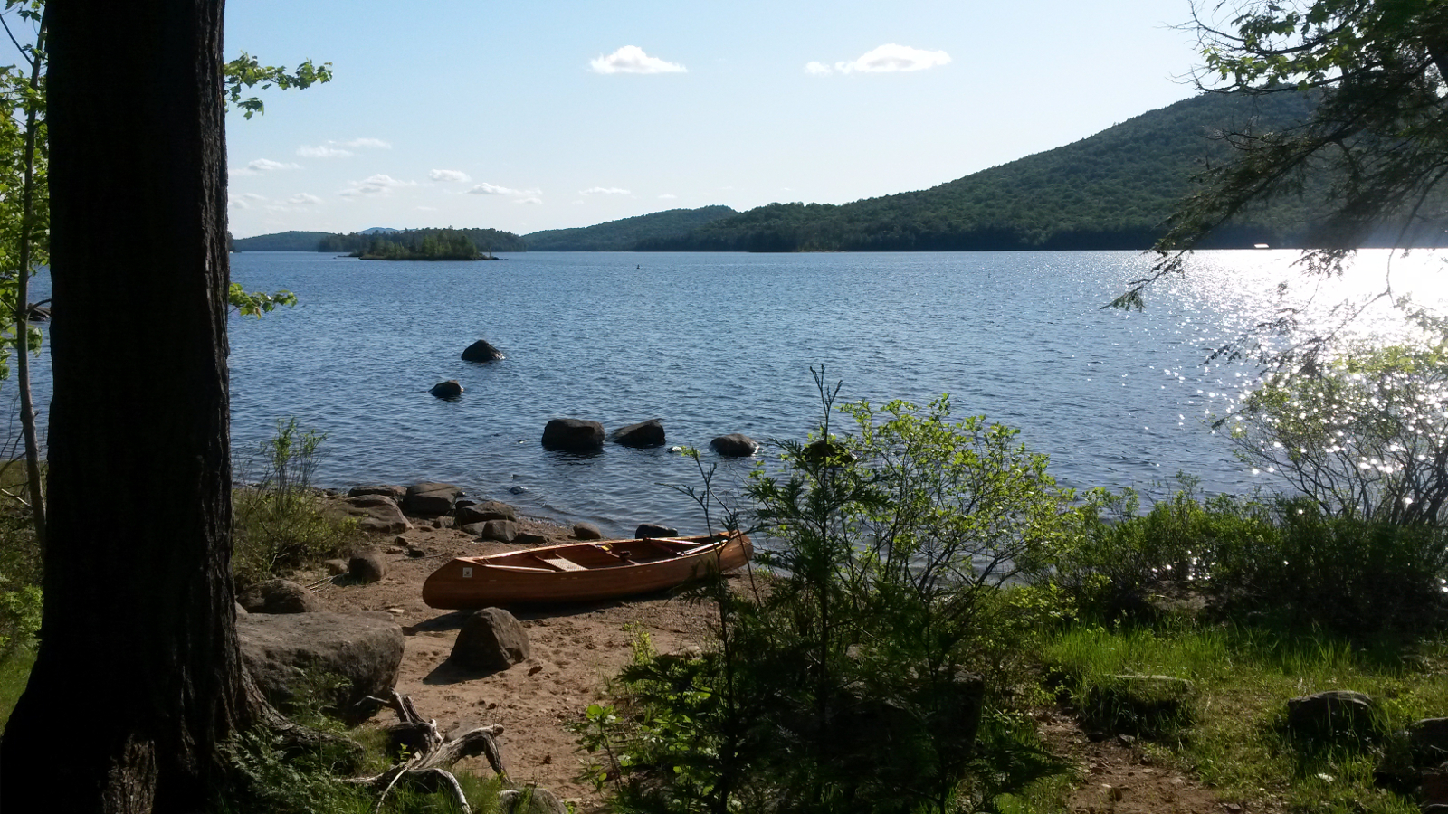 into the woods. Upper Saranac Lake was brief, although my exit from Huckleberry Bay was hindered by a developing west wind. The Indian Carry from