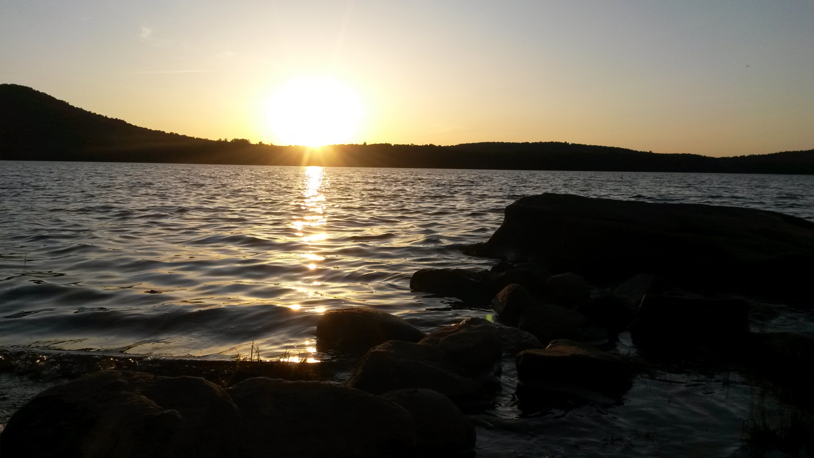 The lean-to was vacant, and I cooked dinner on the wood-stove on a sandy beach as the sun sank over the mountains to the west. Perfection in