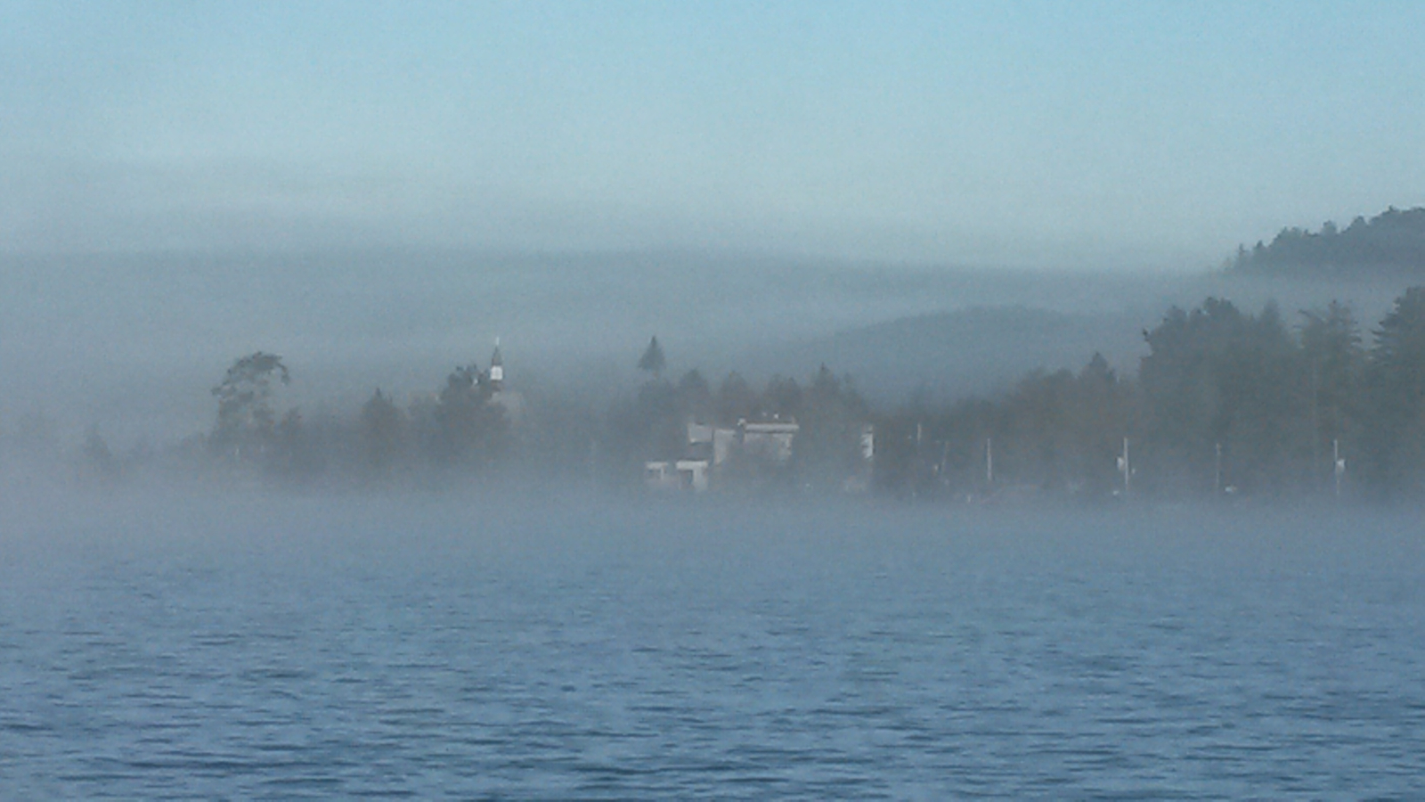 that I would pass under were initially totally hidden from view. The mist lifted a little as I crossed the southwest of Raquette Lake, and I homed