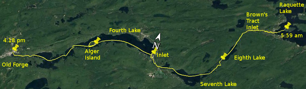 Having checked the direction last night when all was visible, I knew the direction to head, even though Raquette Lake Village and the road bridge