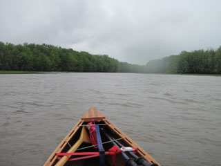 the Missisquoi. The waves are steep and choppy, not conditions that I like, but I ride them well and only a few slop into the canoe.