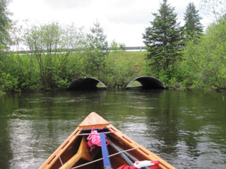 haul over a downed tree. South America Pond Road bridge proves to have too little clearance, so I carry around it.