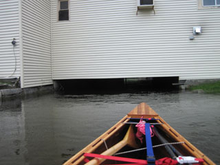 Some time later I am pushing under the Clyde Hotel which spans the river as it exits Island Pond. Control under here is not easy with a