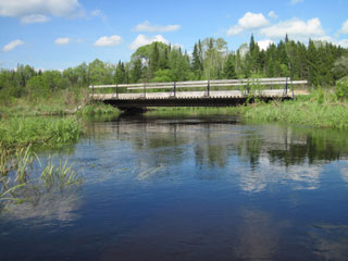 bridge I contemplate getting back in, but the put-in looks steep, and I'm not confident about negotiating past the rapids below it.