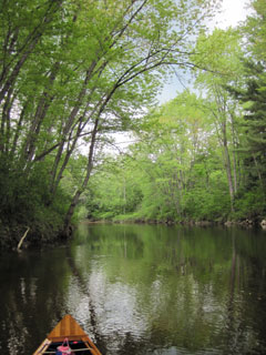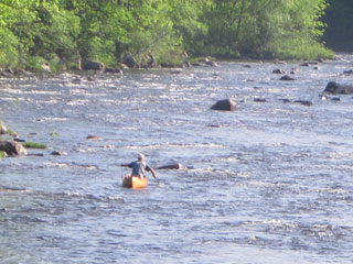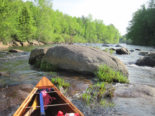 I can hug the banks and work the eddies in time-honoured tradition by now. My progress is good until the Pontook rapids steepen. At this