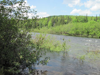 bushwhack carry takes me to the main river. I later see where the cut-through emerges.