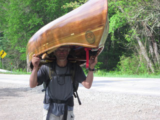 the Lower Dam which I scouted last year, but decide that the flow is too great to put in there. The carry continues, and somehow I
