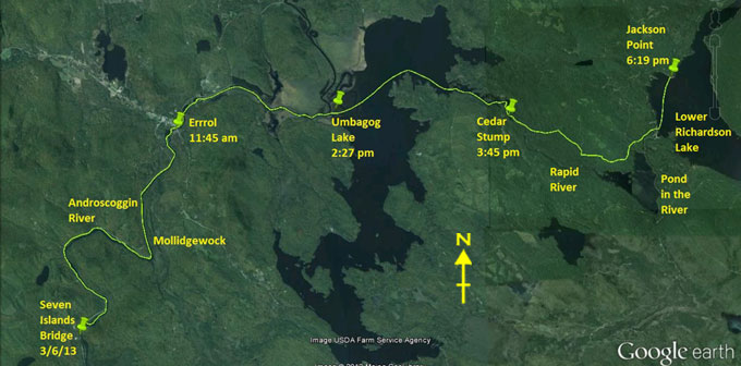 brisk westerly wind out of the river into Umbagog Lake. This is familiar territory – Viveka and I paddled this section from Rangeley to