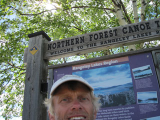 After taking the obligatory photo beside the NFCT kiosk, I head up to Rangeley Lakes Bed & Breakfast, easy to find. There's no response