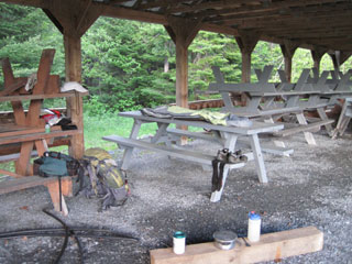 I decide to stay anyway, and unpack gear in the picnic shelter. I also locate the NFCT sign-in box and discharge that duty. Although