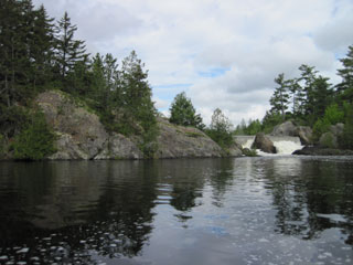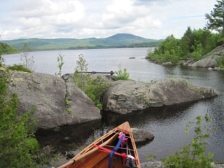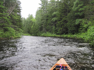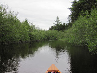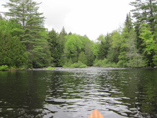 current for a few more miles dictates otherwise. The 5.5 or more miles of carry from here to Spencer Rips on the Moose River seem more