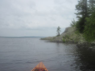 Pillsbury Island, before crossing to the eastern shore. Crossing the outlet from Smith Brook is a tough haul, and then I once more pick
