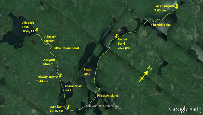 up some lee. I hug this shore all the way north, through Round Pond (yet another “Round Pond”) where I set a SPOT, under John's Bridge