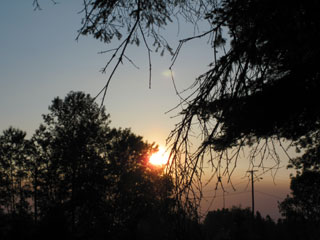 I'm up before 6:00 am to a clear dawn, having snapped a few shots of the sunrise from my hammock. I pack without eating – breakfast will