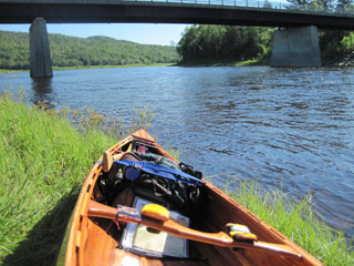 from a camp-site, but I have nowhere to take it. After a quick photo shoot of the canoe beside the Allagash River, I set off for the