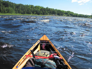 Even when I turn more to the east again, the wind on my left shoulder makes steering difficult. I continue through occasional riffles,