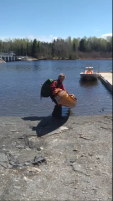 asked permission to take some video of my carry. This he did, my initial loading up and beginning the bushwhack to the trail and the final arrival