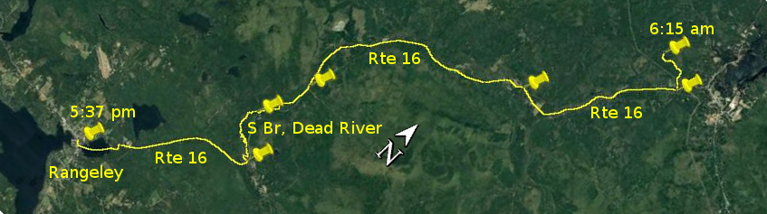early yet, and Rangeley was just a few miles away. The lure of some comfort brought me to my feet for another 3.7 miles of carry along Route 16,