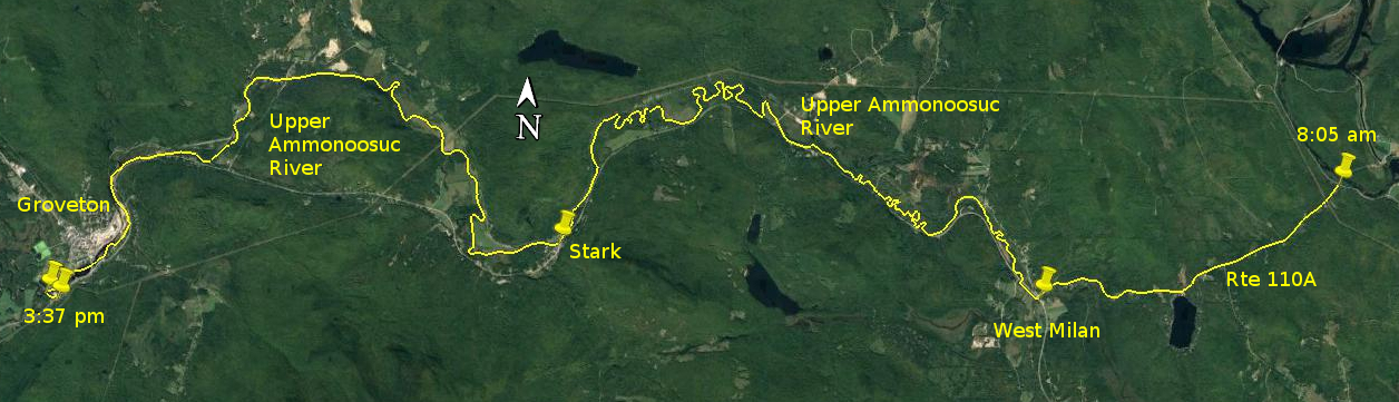 around Red Dam was as awkward as I remembered, with steep take-out and put-in. The carries around the other two dams in Groveton were uneventful,