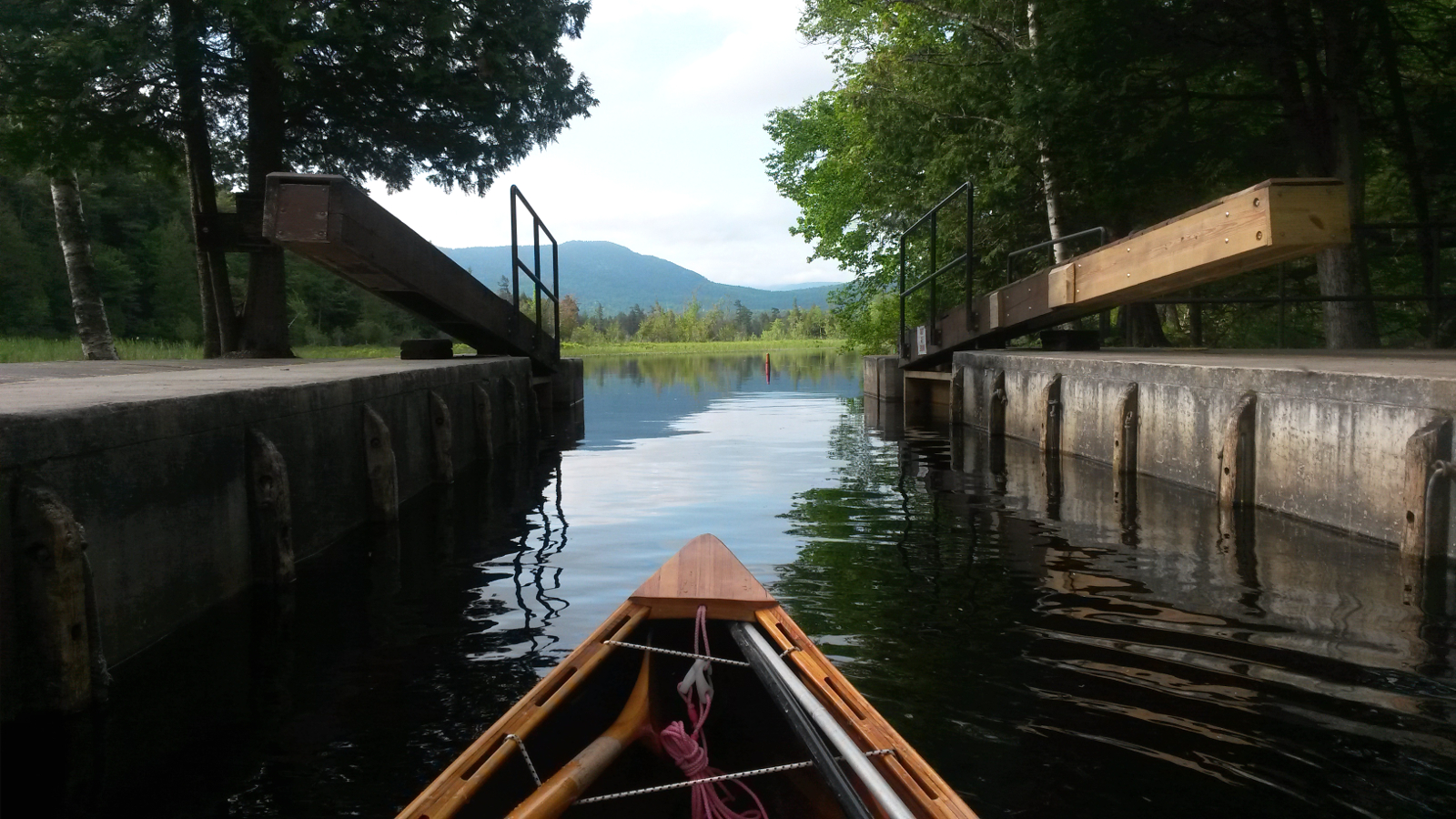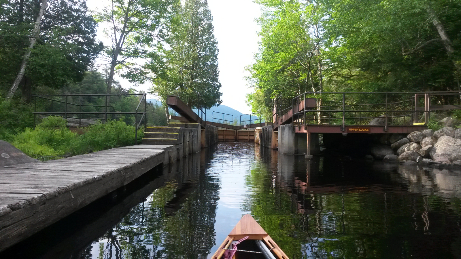 I made a beeline for the inlet of the Saranac River, and was soon at the Upper Lock. No-one was in attendance, so I paddled into the lock – it