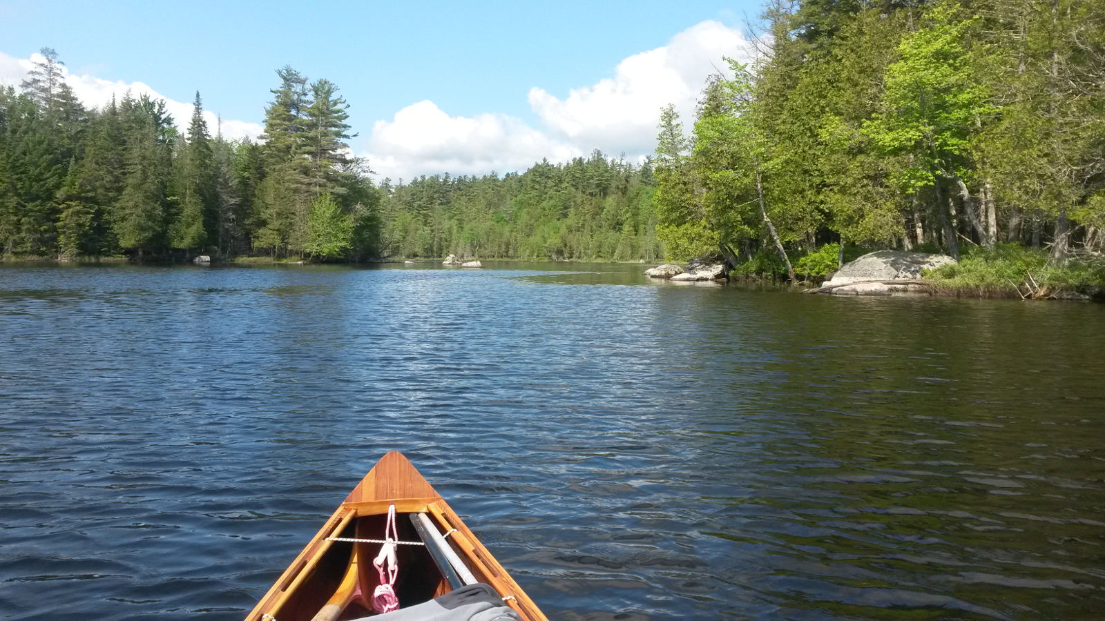 into the woods. Upper Saranac Lake was brief, although my exit from Huckleberry Bay was hindered by a developing west wind. The Indian Carry from