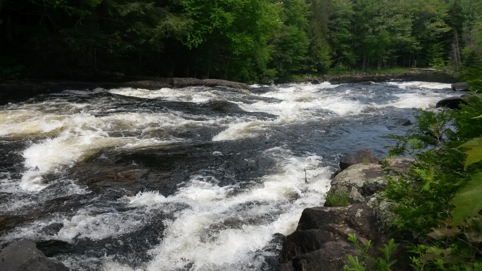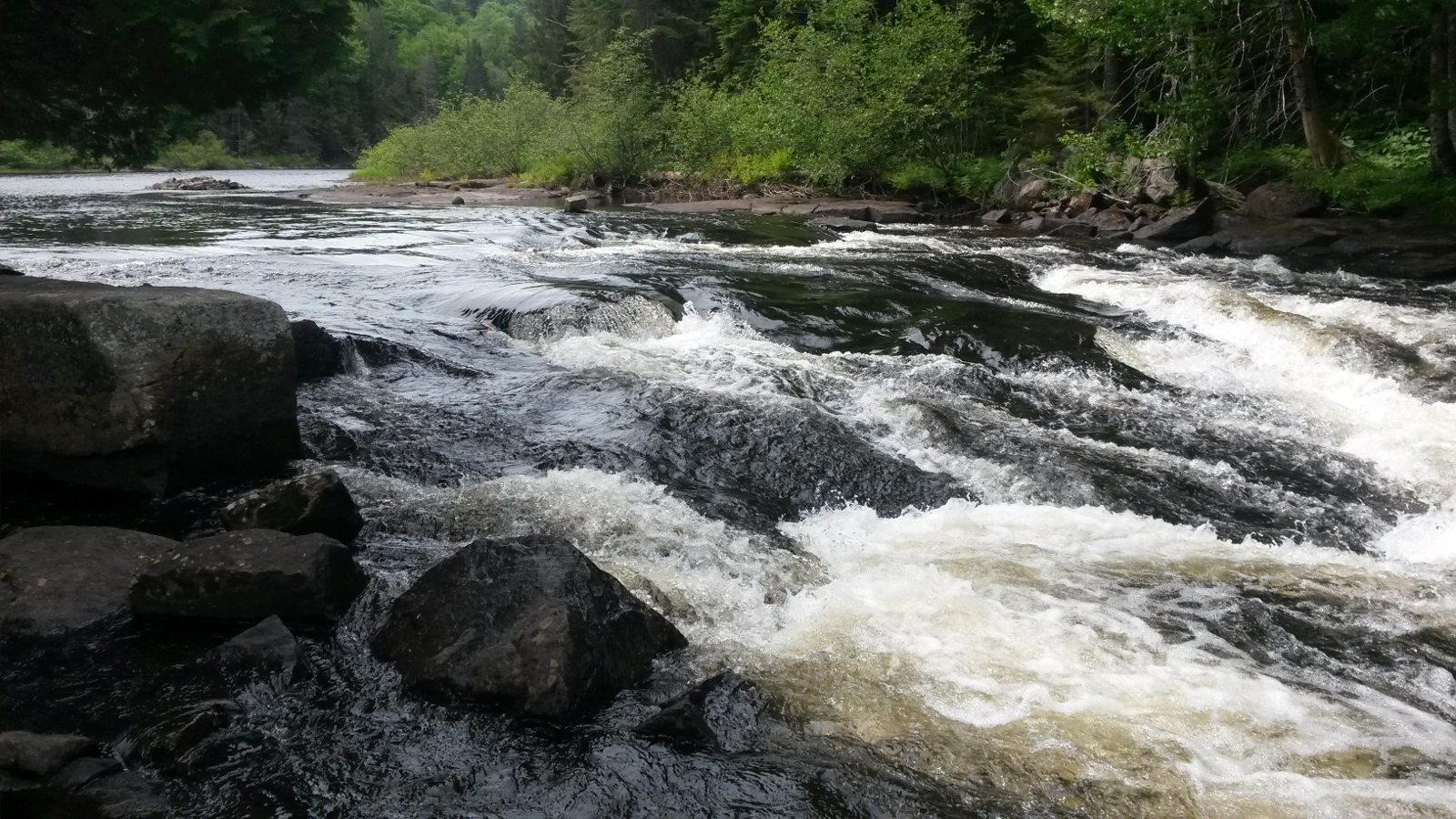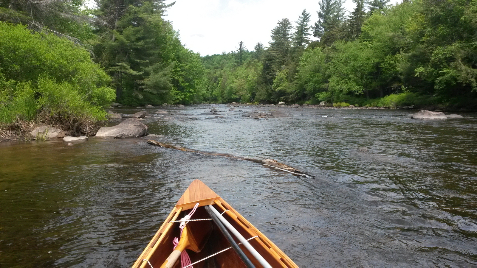 the Raquette River once more, and the wind's effect was diminished. The Deerland rapids appeared, with no obvious sign of a take-out, but I soon